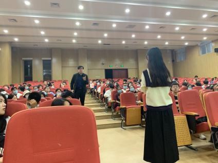 接下来分享的是朱鑫茹学姐,一口流利正宗的英文自我介绍,惊艳到了在场的所有人。朱鑫茹学姐分享说:她在大一的时候,英语第一学期考试是不及格的;但此后,她每天都会提前预习课本内容,提前背会并默写课后单词,英语成绩也便慢慢的好了起来。关于证书,学姐对我们提出了一些建议,在大二,大三的时候尽量考一些相关的从业资格证书,通过多渠道,多信息的查询尽力考下来。关于考研方面,学姐告诉我们保证大三左右修满课程,留出足够的时间复习。最后,学姐告诉我们人生永无止境,我们也有无限的可能。而后,学姐又耐心地解答了同学们的问题:可以慢慢培养对学科的兴趣、该如何应聘实习单位、如何提升英语水平等等。