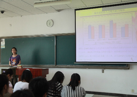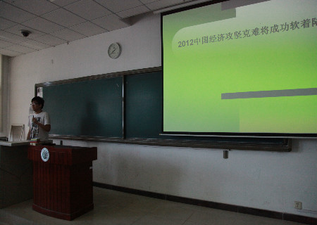 首先,李荣荣就其毕业论文《境内外商业银行经营模式和经营绩效分析》,为大家进行了专业论文写作的报告分析。她分别从论文写作目的、思路以及研究成果的指导作用三个方面,结合其论文的主要内容摘要,阐述了一篇专业论文所必须具备的要基本求和创新点,即分明的层次、详实准确的数据资料、丰富而有所侧重的专业指标等;而来自09级的青年经济论坛一等奖获得者刘叶舟通过对其获奖论文《中国城乡居民收入分配差距》的介绍分析,提出了“提出问题——分析问题——解决问题”的论文撰写模式;高扬则以二等奖论文《2012中国经济攻坚克难将成功软着陆》提出了主线确定与指标分析等方面的写作方法。