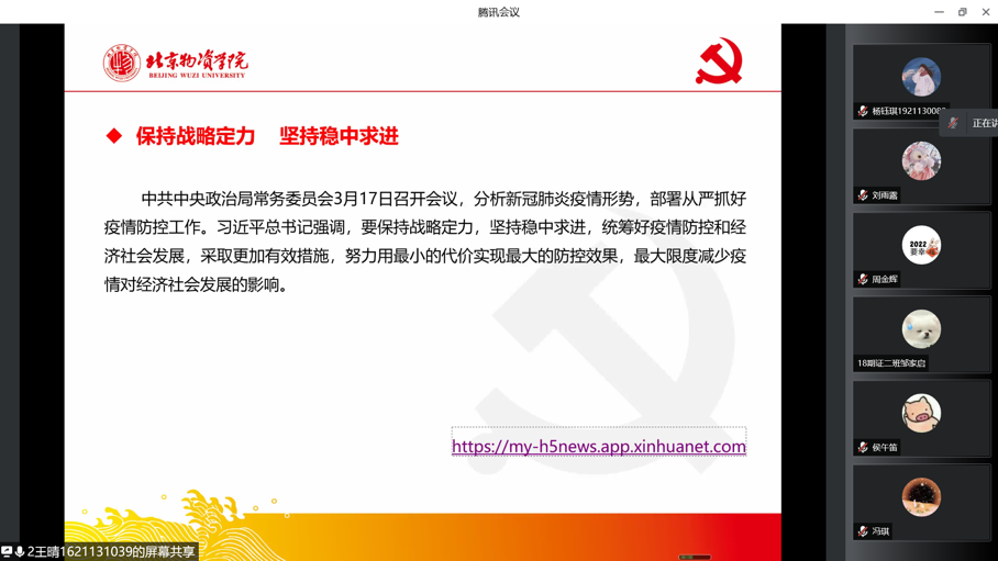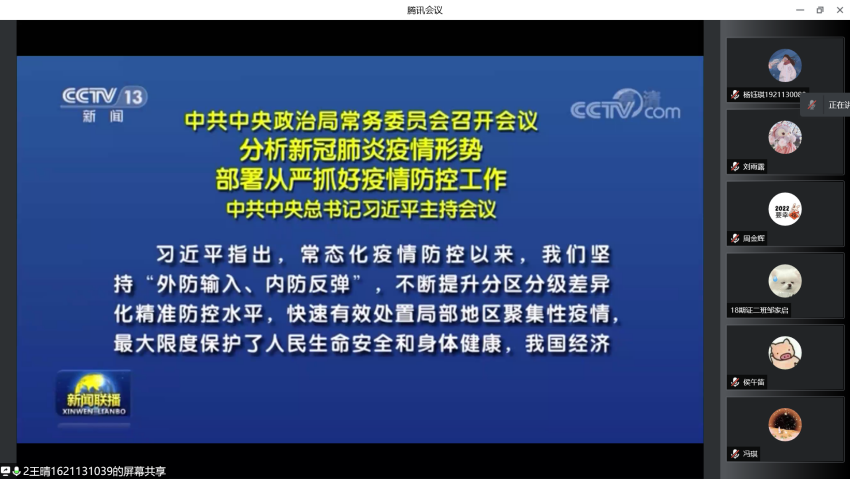 2022年3月21日星期一下午5点半,证券与期货专业第一员工党支部围绕学习习总书记讲话,落实疫情防控召开了线上会议。