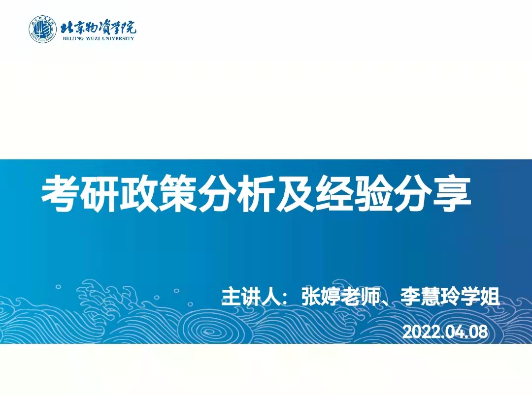 为使广大经院学子更好的了解考研流程、明确考研方向、制定考研计划,2022年4月8日下午3:00点,qm球盟会考研宣讲会于线上顺利召开,全体2019级、部分2020级和2021级同学参加。本次讲座由北京物资学党委研究生工作部副部长张婷老师及2018级的李慧玲同学主讲,2019级辅导员冯琪老师主持。