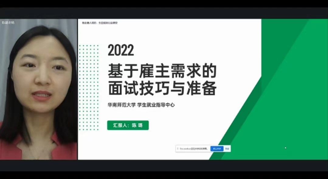 2022年5月5日晚,为进一步指导同学们如何在面试上脱颖而出,qm球盟会再次联合安博生涯,邀请华南师范大学就业指导中心的陈璐博士,举办主题为“基于雇主需求的面试技巧及准备”的线上讲座,qm球盟会各年级同学线上参与学习。 下面我们来梳理一下本次讲座的重点干货。