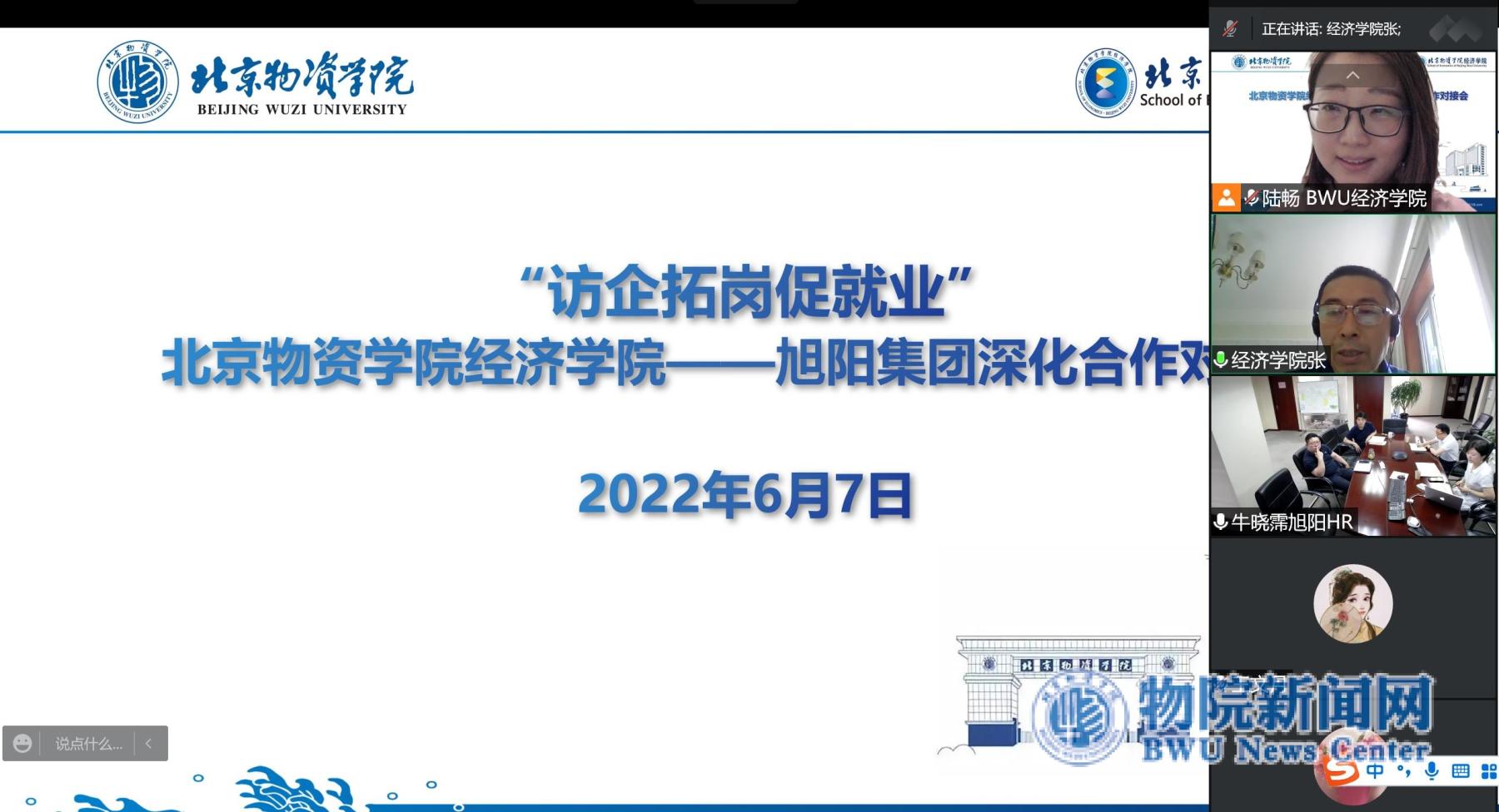 为深入贯彻落实教育部“访企拓岗促就业专项行动”的要求,助推毕业生高质量就业,推动校企多领域合作共赢,提升qm球盟会就业质量和人才培养质量,2022年6月7日上午,qm球盟会经理张国胜带队线上走访旭阳集团,与旭阳集团总监周顺、招聘管理部总经理牛晓霈,旭阳集团营销公司总经理陈志胜,副总经理兼基金公司常务副总经理焦勇,人力资源部经理吴晓红就深化合作展开了深入的交流。会议由qm球盟会校企合作对接联络人、辅导员陆畅主持会议,公司党委副书记毛文富、教学副经理原玲玲、国际经济与贸易系主任王贝贝、期货与证券专业教师单磊一同参加会议。