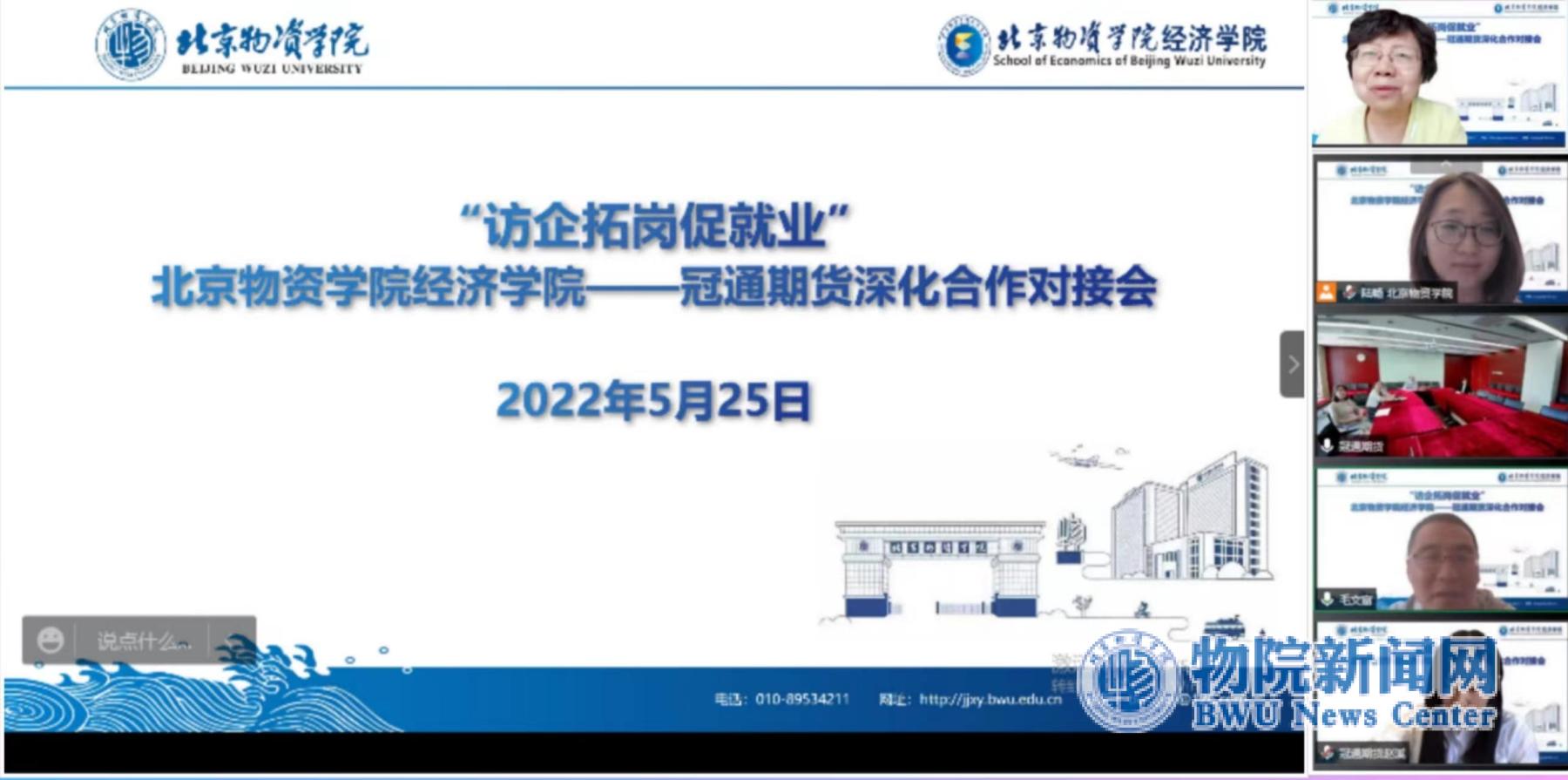 为落实教育部“访企拓岗促就业专项行动”要求,全面深化校企合作、供需对接,提升qm球盟会就业质量和人才培养质量,2022年5月25日下午,公司党委副书记沈小静带队走访冠通期货有限公司,与冠通期货总经理母润昌,副总经理、员工赵溪,人力资源总监黄雪征,黑色品种分析师、员工段珍珍通过线上会议,就进一步深化校企合作开展交流。公司党委副书记毛文富主持会议,期货与证券专业负责人朱才斌,期货与证券教工党支部书记刘荔,校企合作对接联络人、辅导员陆畅一同参加会议。