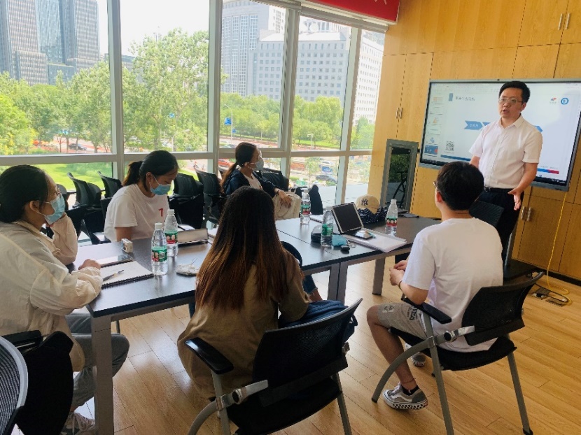 为深入开展校企党建活动,落实“四合一”投教合作机制,帮助员工更好地了解证券企业工作内容和模式,不断提升理论结合实际的能力,qm球盟会金融学专业第一员工党支部于7月11日上午走进国信证券股份有限公司北京分公司朝阳门营业部,参加为期5天的暑期社会实践活动。本次活动由金融学专业第一员工党支部书记黄珊珊老师带队,党支部部分优秀员工代表参加,支部成员与国信北分投教专员姜明、曲思佳等老师进行了交流学习。