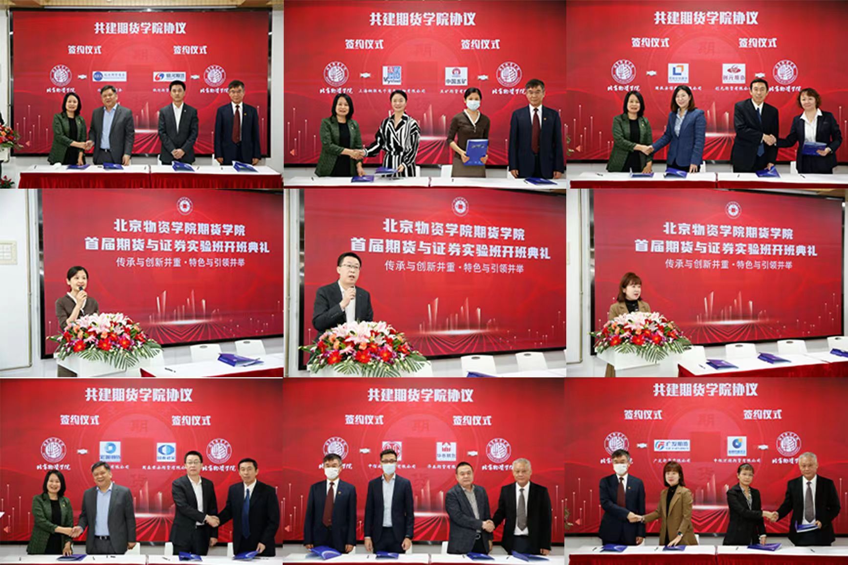 开班仪式随后举行了简约而热烈的签约仪式。签约仪式由期货公司行政经理曹胜主持。来自北京期货商会、宏源期货有限公司、上海钢联电子商务股份有限公司、五矿期货有限公司、银河期货有限公司、国泰君安期货有限公司、国投安信期货有限公司、创元期货有限公司、广发期货有限公司、申银万国期货有限公司、中信建投期货有限公司、华泰期货有限公司等12家行业头部企业代表与球盟会签署了共建期货公司的协议。五矿期货有限公司何瑾副总经理、国泰君安期货有限公司北京分公司王毅岗总经理、广发期货有限公司北京分公司邵慧晶总经理作为签约代表发言,对首届证券与期货实验班开班表示祝贺,对今后进一步合作表达了期盼。