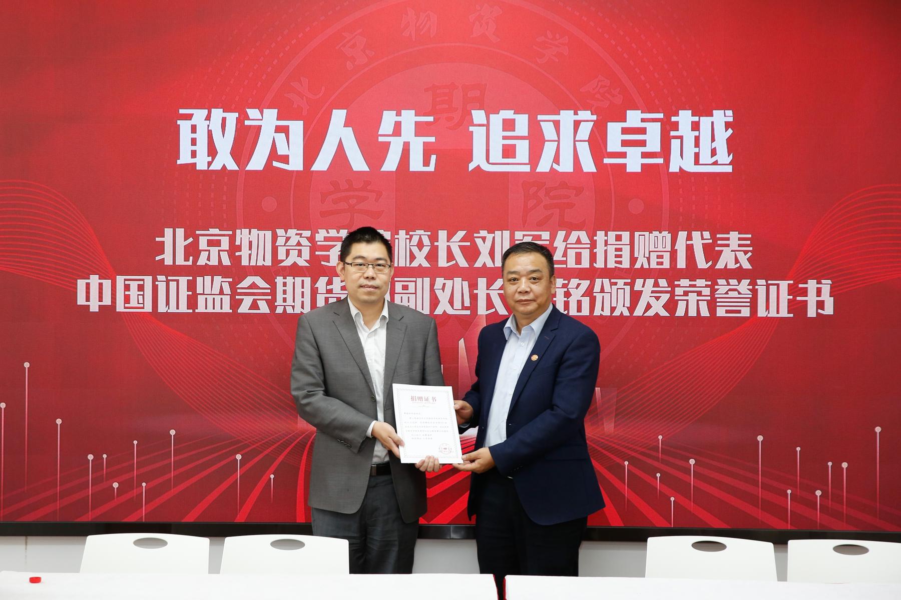 随后,球盟会刘军经理为期货公司名誉经理李正强教授颁发了聘书,为捐赠代表中国证监会期货部副处长李铭博士颁发了捐赠证书。