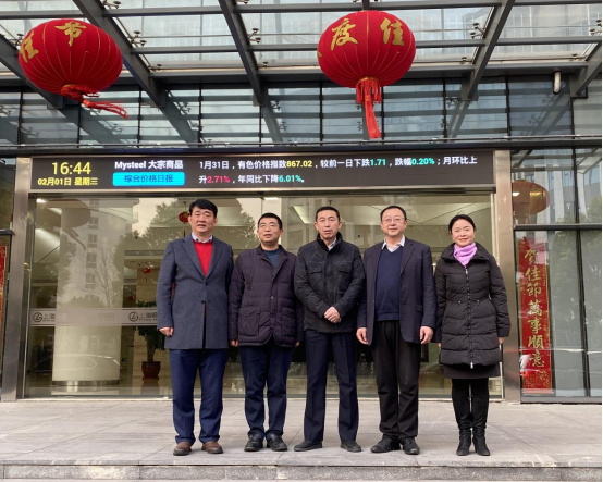 图4、朱军红董事长陪同来宾参观上海钢联大宗商品展示厅,了解mysteel基准价格、价格指数和多维度产业大数据开发及应用情况。