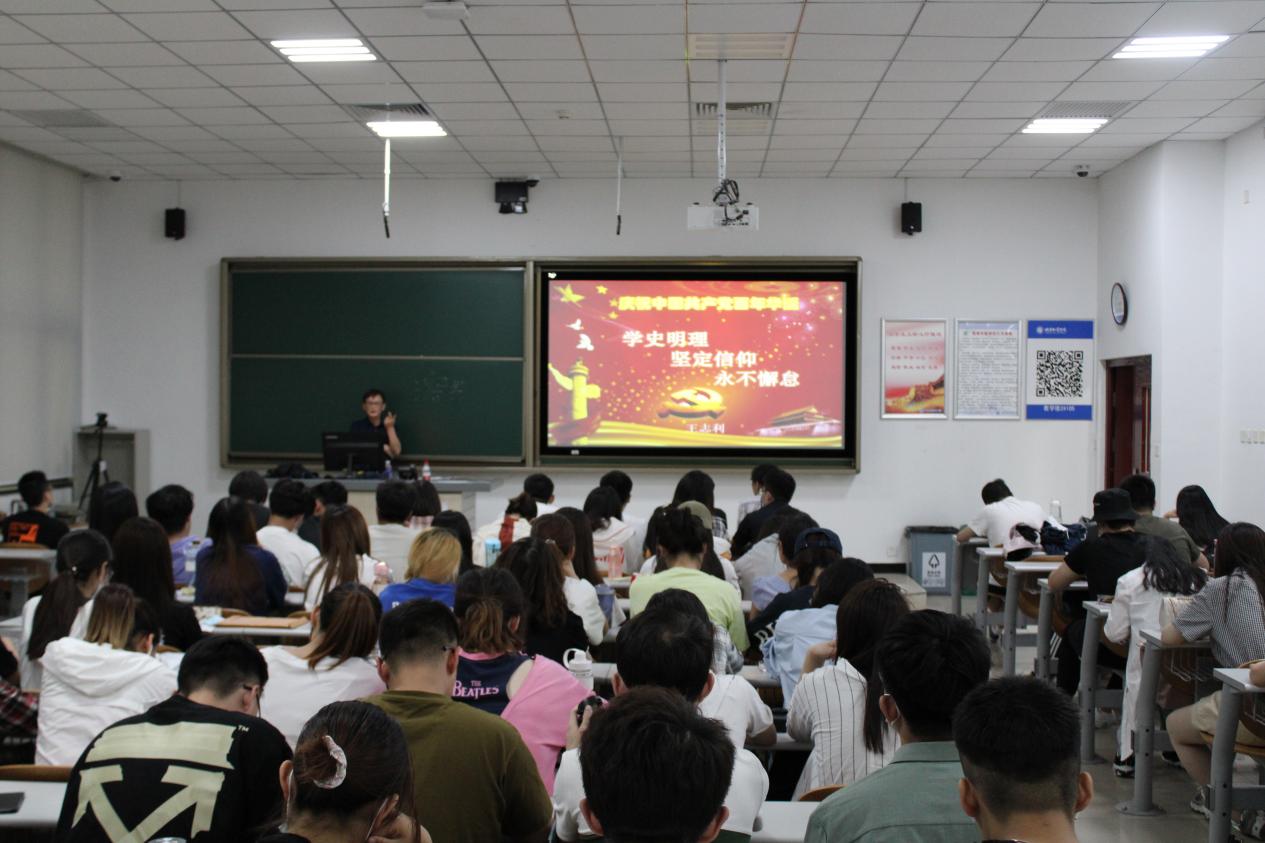 为全面深入开展党史学习教育活动,5月26日下午2点,qm球盟会分党校“永远跟党走”党课培训在二教105教室召开。退休党委王志利老师为同学们做了题为《学史明理、坚定信仰、永不懈怠》的主题报告,王老师通过讲述一个党史事件、一首红歌来历,教育员工党员们运用唯物史观分析看待国内外形势,把握历史发展规律和大势。100多名党员、发展对象现场认真聆听了报告。培训由辅导员霍烨老师主持。