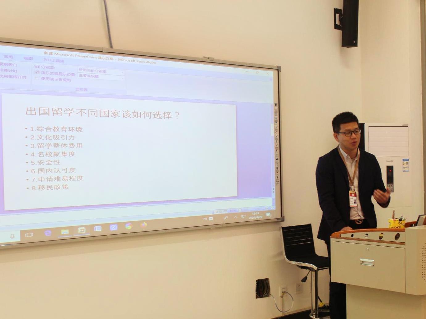 最后老师讲了海归的竞争优势,同学们很大的鼓励并对自己的留学之路有了更多的信心。关于同学们的个人问题老师也相信给予解答,并且建立了微信群的联系渠道也收集了同学们的建议。