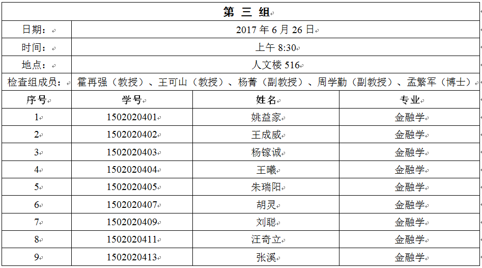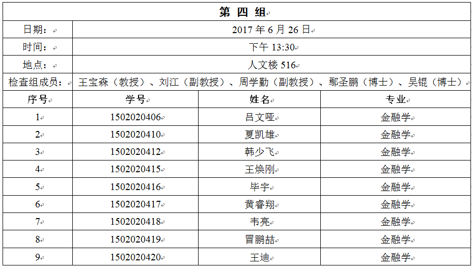 (2)每位员工向检查组做8-10分钟的自述,汇报硕士学位论文题目与开题报告的一致性、主要内容、进度情况、目标落实情况、存在的问题以及解决办法等;