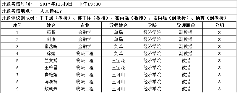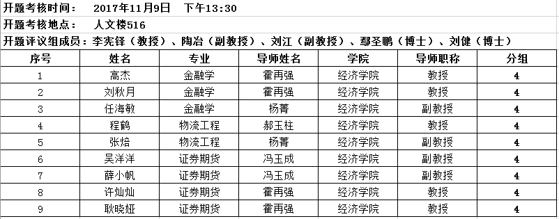 所有参加学位论文开题考核答辩的2016级研究生,个人务必在11月8日上午12点前按时提交下列材料到各班班长,由班长汇总后在11月8日下午4:30前交至人文楼523: