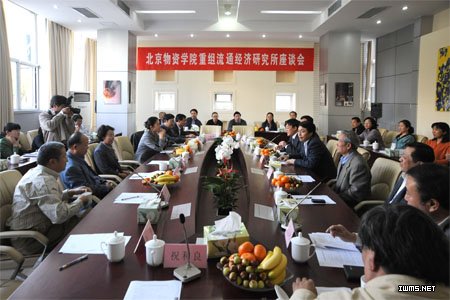 2009年10月15日下午2点,球盟会重组流通经济研究所座谈会在公司国际交流中心一层会议室隆重举行。北京市副市长程红、北京市商委副主任程玉华、北京市商委物流发展处处长冯守华、通州区商务局副局长胡少军等相关领导以及特邀专家丁俊发,马龙龙,洪涛、张声书等参加了座谈会。出席座谈会的还有公司校领导王稼琼、王旭东、龚树生、翁心刚、王志鸣,以及校内专家、职能部门和院系负责人、相关研究人员。座谈会由王旭东副董事长主持。